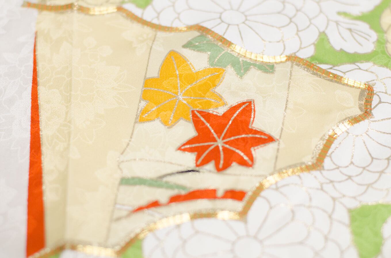 雲取りの柄の部分には金駒刺繍があります。どことなくアンティーク感のある生地です。