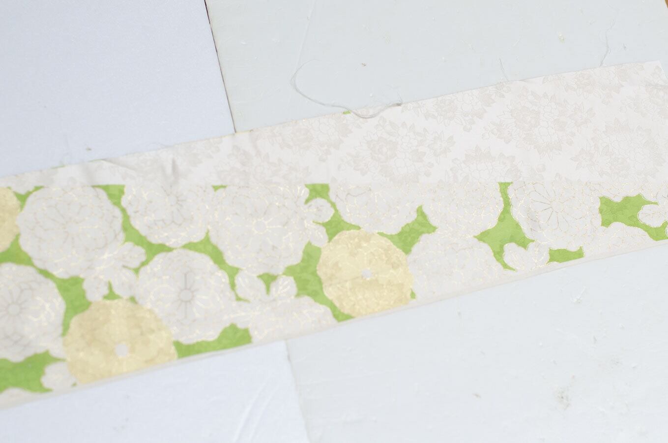 鮮やかな黄緑の地に菊柄の振袖はぎれです。