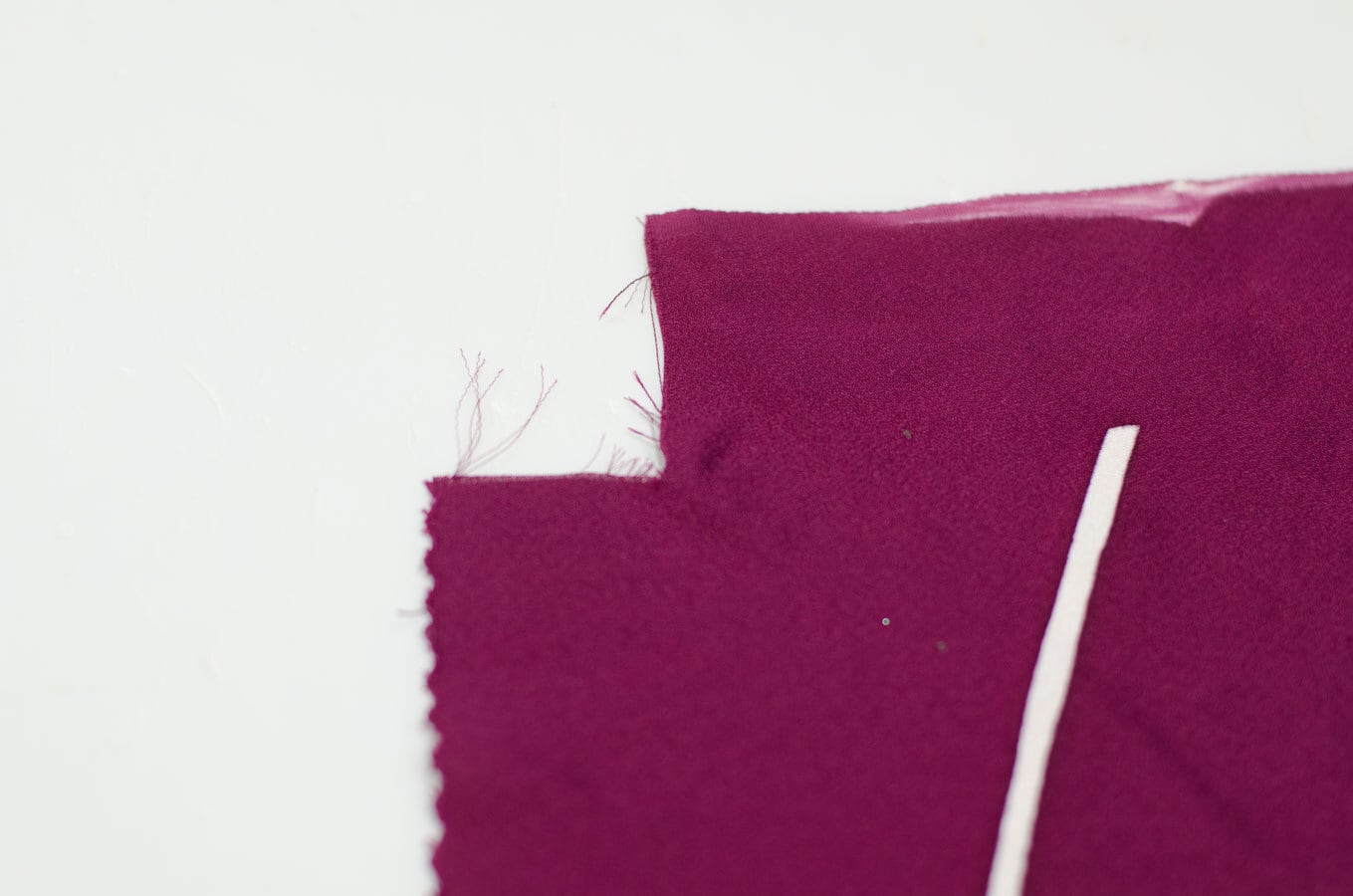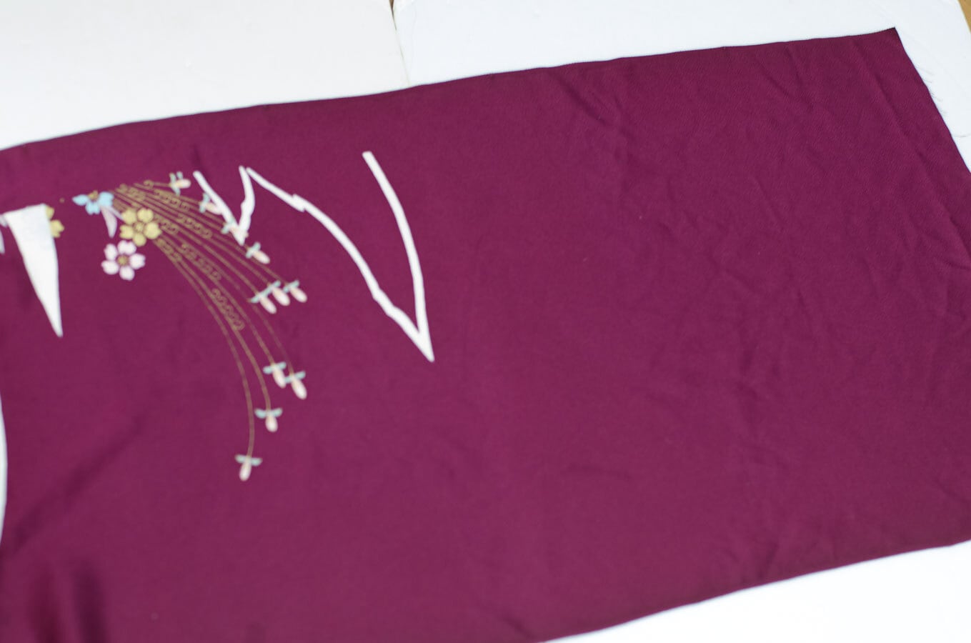 濃いボルドー色に蝶と花柄の振袖見本はぎれです。