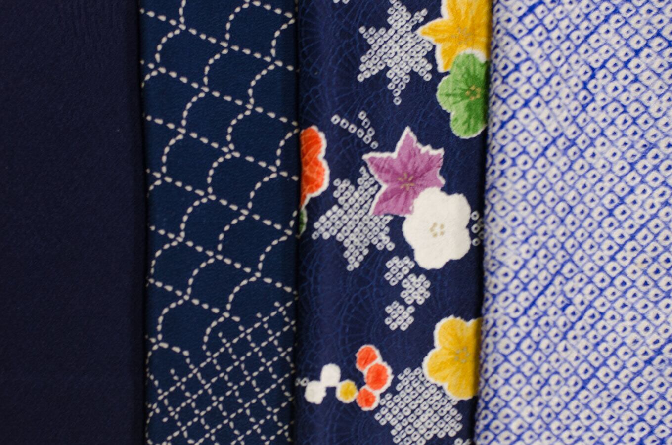 艶があるもの、柄があるものなど微妙な青、水色の違いをお楽しみいただければと思います。