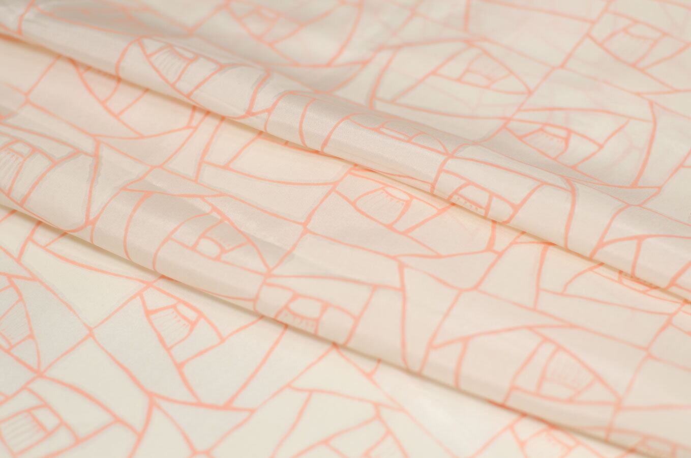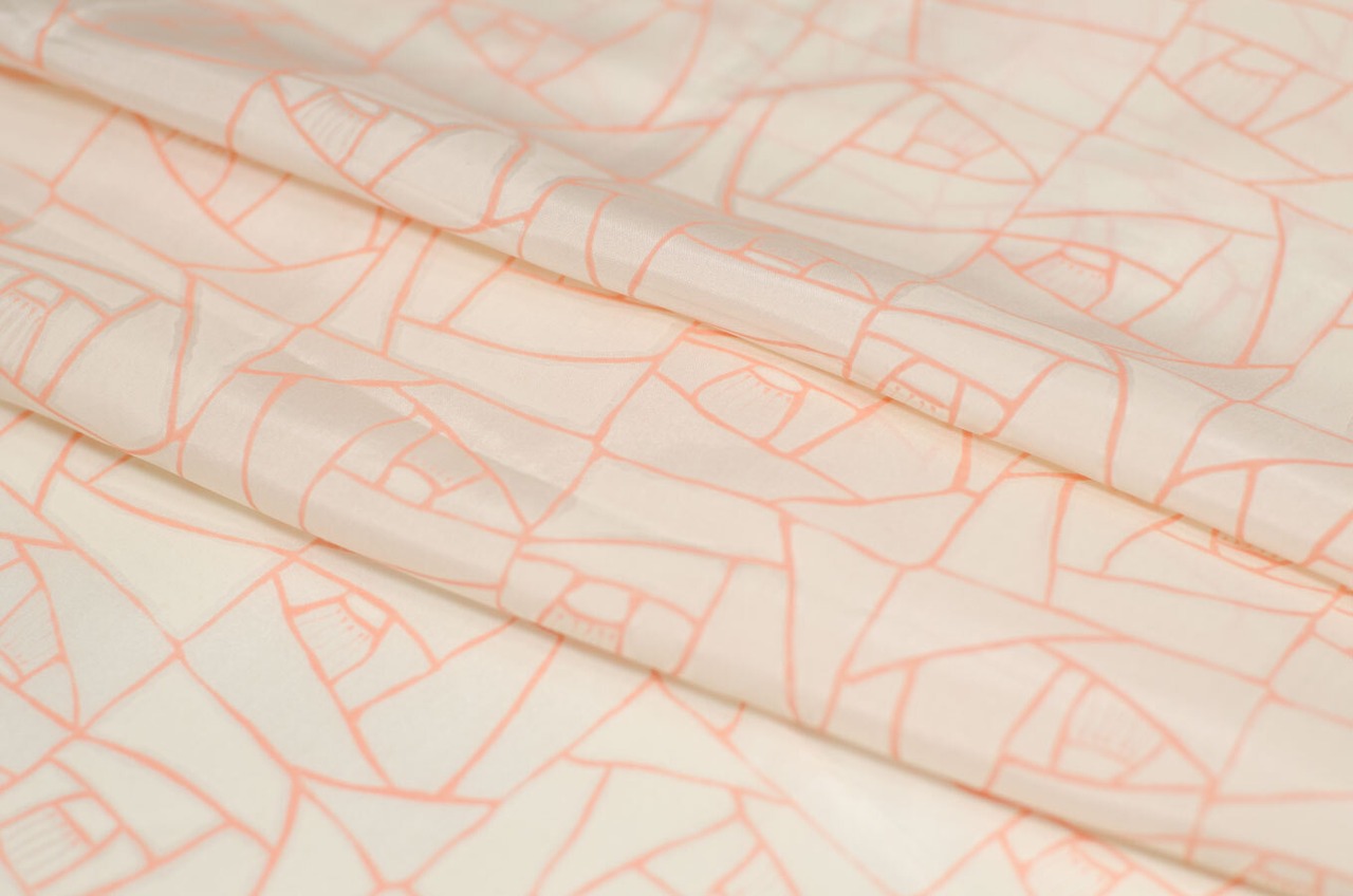 アイボリーにオレンジで格子の中に椿が描かれた柄になります。