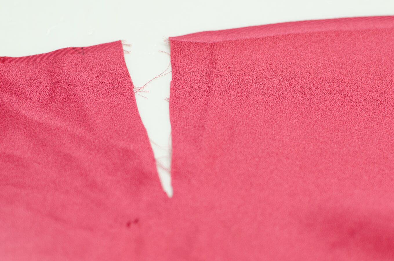 深い青みの赤(ニコチールレッド #c82c55を濃くしたような色が近いと思います)の訪問着ハギレです。