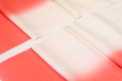 艶のある乳白色の地に明るい赤よりのオレンジのぼかしの生地です。
